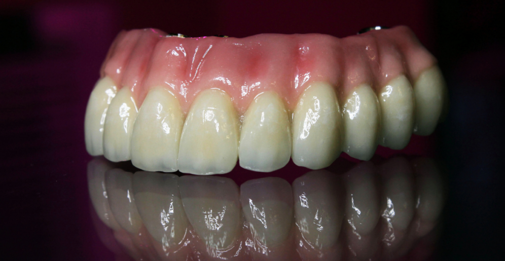 - Prótesis completas fijas: rehabilitan toda una arcada (superior o inferior) con 4 a 6 implantes. Son conocidas como “All-on-4” o “All-on-6”.